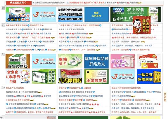 搜索一下“醫(yī)藥招商”,第一頁(yè)的網(wǎng)站打開都差不多,打開之后,一個(gè)網(wǎng)頁(yè),上千個(gè)文字和圖片廣告夾雜在一起,讓你眼花繚亂。